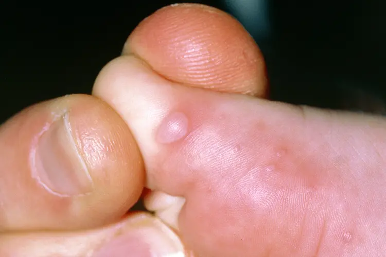 - 3단계(피부 발진, 3–5일차): 손바닥·발바닥·손등·발등, 때로는 엉덩이/사타구니에 수포성 발진